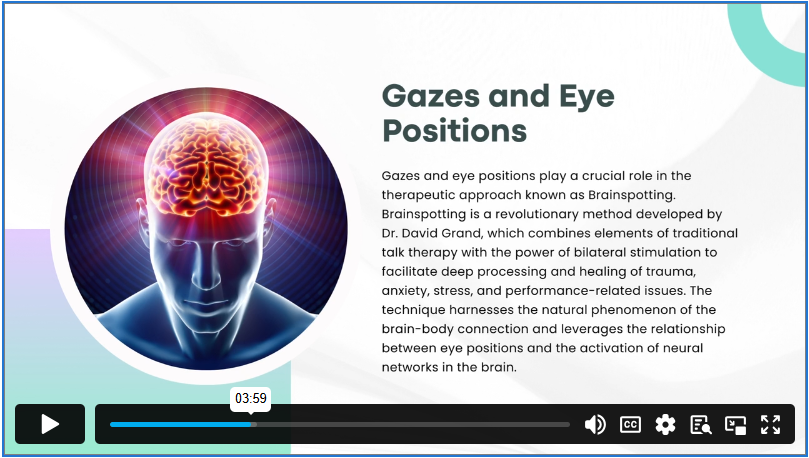 Brainspotting Therapy: A Powerful Approach to Trauma Healing is a comprehensive training course designed to introduce learners to one of the most innovative methods in trauma recovery. Brainspotting allows individuals to access, process, and release deeply stored emotional and somatic experiences by using focused eye positions linked to neural activation points.